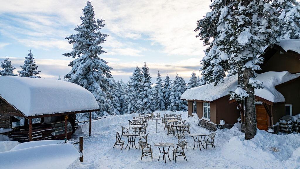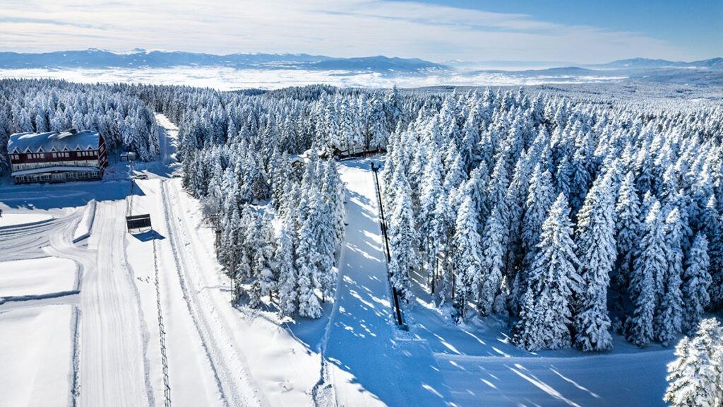 yükseklikte, kış sporları ve kayak imkanına sahip bir otelin bulunduğu