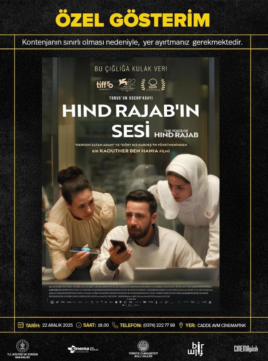 Neredeyim : Üst Menü Haberler / Duyurular Haberler 2025 “Hind Rajab’ın Sesi” Filminin Bolu’daki Özel Gösterimi
