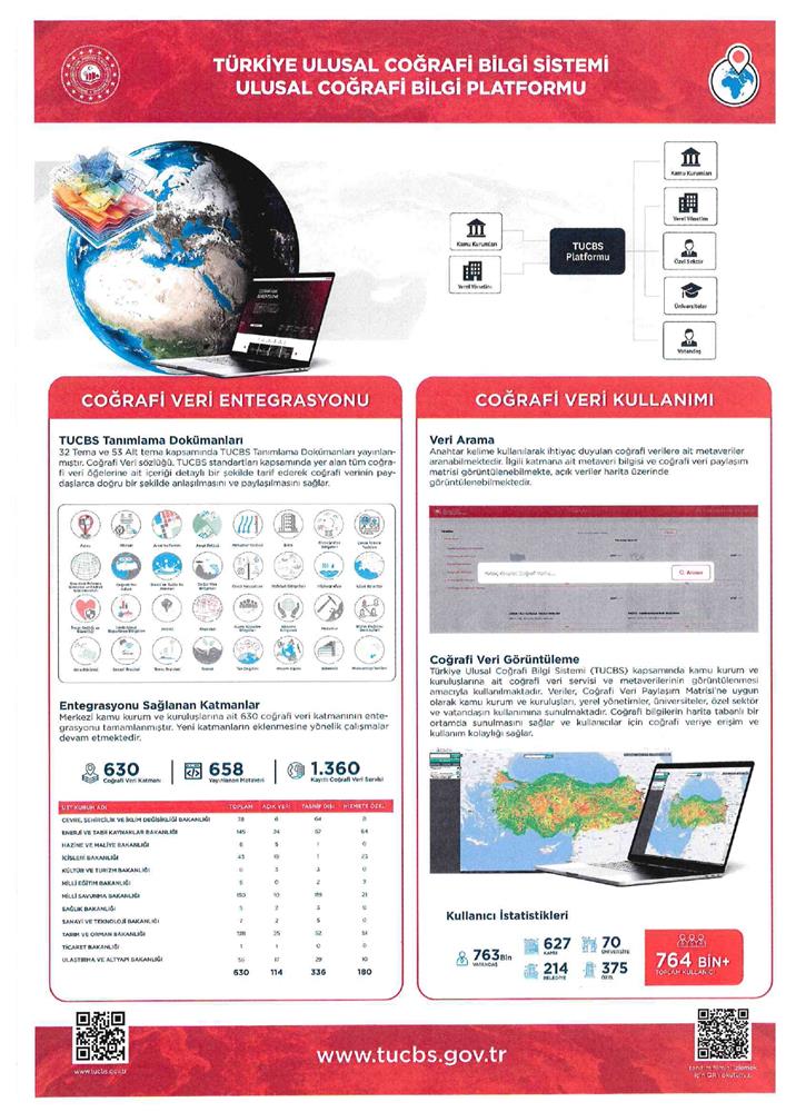 Çevre, Şehircilik ve İklim Değişikliği Bakanlığınca hazırlanan "2024-2030 Ulusal Coğrafi Bilgi Stratejisi ve Eylem Planı" doğrultusunda Türkiye'nin tüm coğrafi verilerini bir araya getiren ve e-Devlet Kapısı ile entegre bir yapıda tasarlanan "Ulusal Coğrafi Bilgi Platformu" oluşturulmuştur.